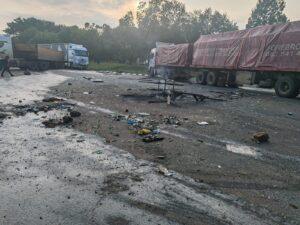 Die polisie van Dientjie en die polisie vir openbare orde van Hazyview monitor ‘n onstabiele situasie na die sluiting van die R532 by Hlabekisa, Bourke’s Luck Potholes.