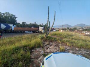 Volgens ‘n vragmotorbestuurder het die groep na bewering sy voertuig met klippe bestook om hom te dwing om te stop.